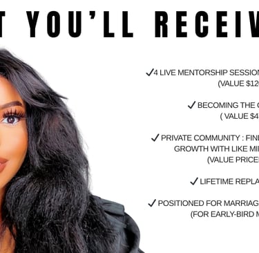 You’ll gain the tools, mindset, and structure you need before entering your next relationship — so you no longer feel anxious or uncertain.