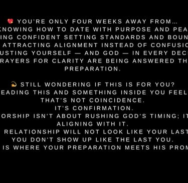 This is where you move from restoration to application — learning how to practically date, set boundaries, and identify alignment through a faith-based lens.